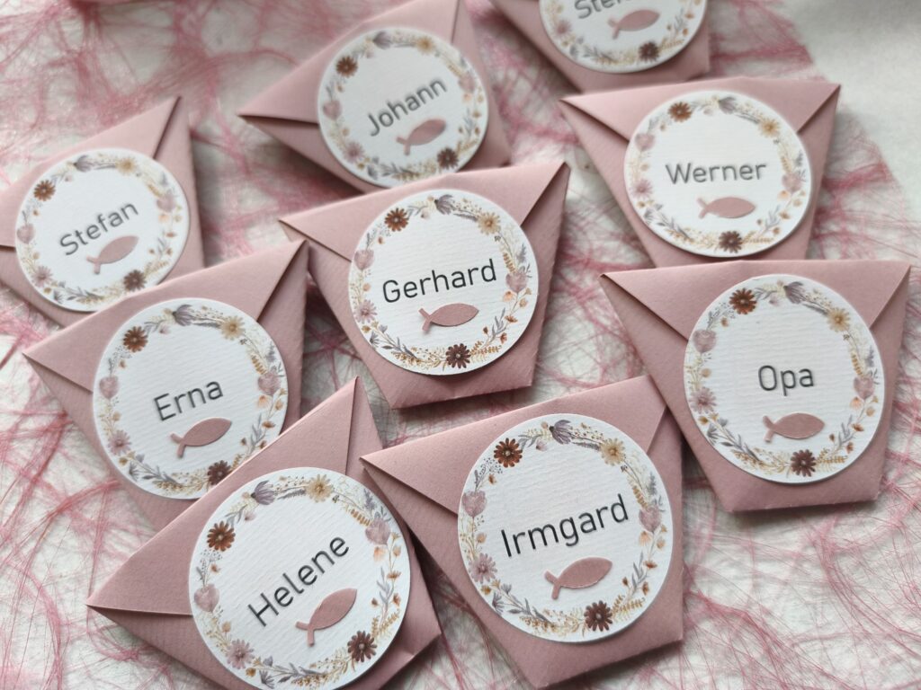 Wir starten in die Kommunion / Konfirmation Saison 2025 ! Einladungskarten, Menükarten, Tischkarten, Servietten, Tischbänder... Termine nach Vereinbarung im Blumenstudio Rauh.