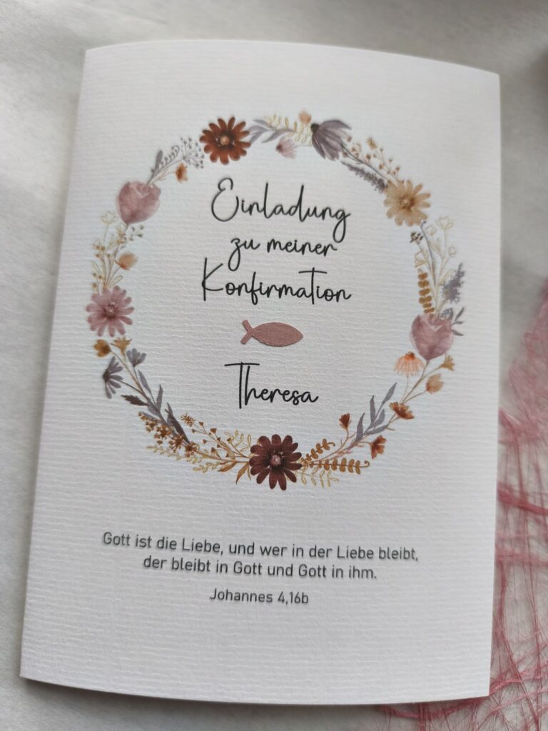 Kommunion / Konfirmation 2026 - Einladungskarten, Tischkarten, Menükarten, Servietten, Tischbänder, Bastelzubehör... Für Einladungskarten melden Sie sich gerne bei mir, um einen Termin im Blumenstudio Rauh zu vereinbaren.