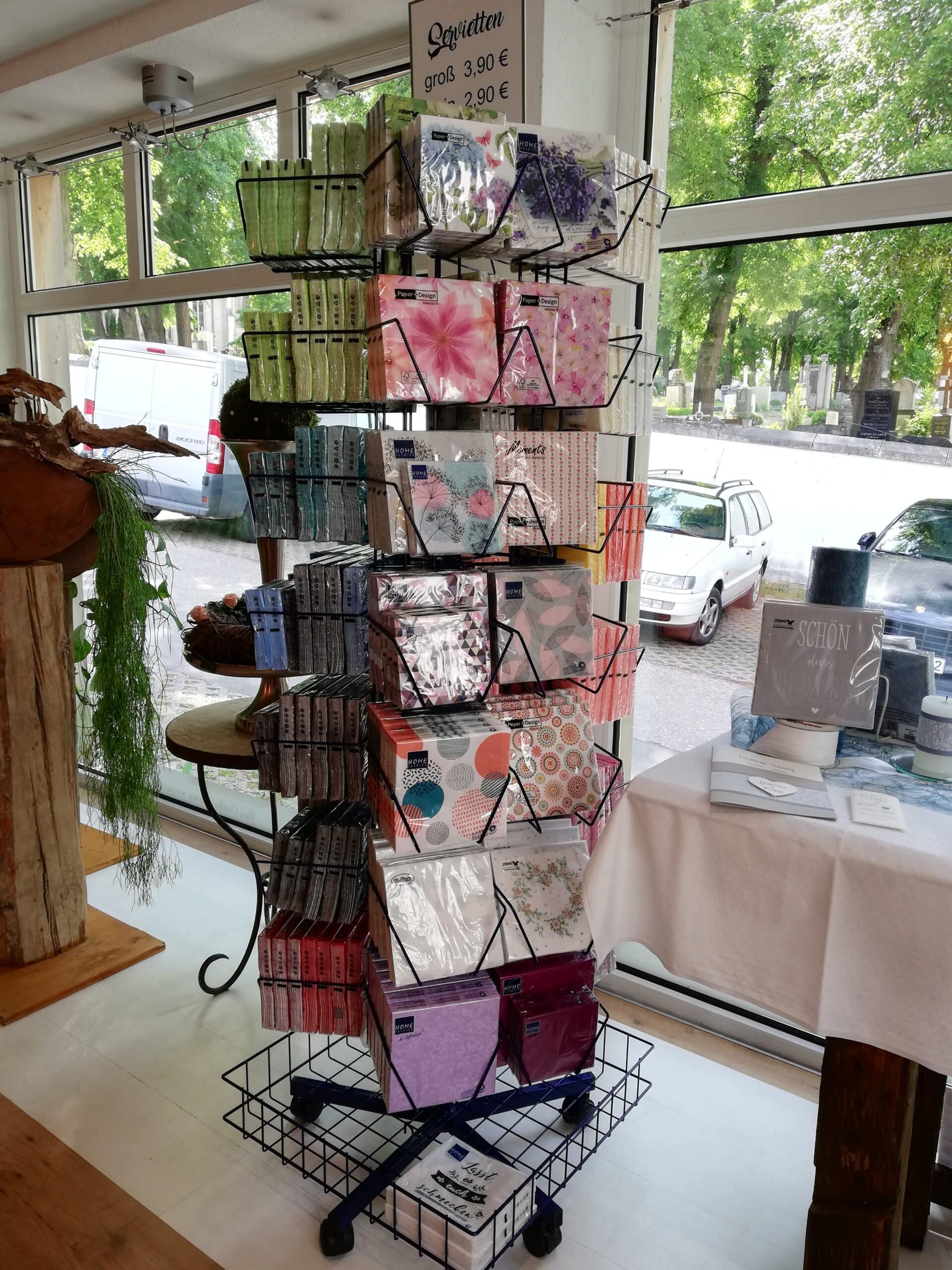 Ab sofort steht mein Serviettenständer im Blumenstudio Rauh. Die Servietten könnt ihr dort direkt bei Frau Rauh bezahlen und gleich mitnehmen.